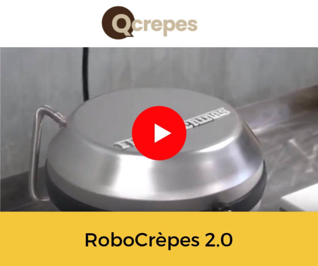 Video RoboCrèpes 3.0 In questo video potrete vedere la facilità di utilizzo della nostra Robocrèpes 3.0 e la sua rapidità nel cuocere e sfornare una Crèpes pronta per essere guarnita con farcitura dolce o salata. RoboCrèpes 3.0